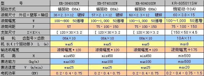 KR-SW系列驅動輸送機使用雙排鏈條驅動,相鄰滾筒之間獨立鏈條連動,傳動平穩、勻速,適用于中重量搬運場合。